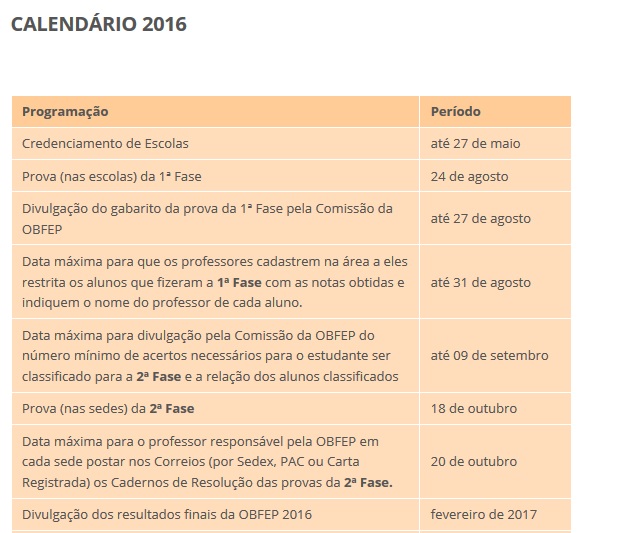 Calendário 2016